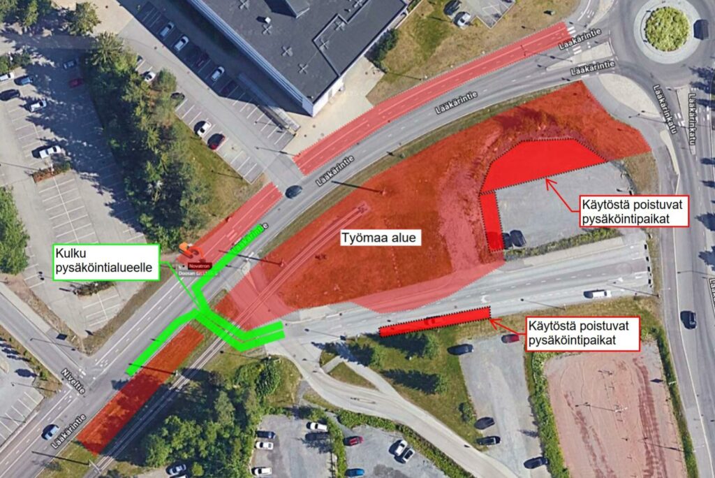 Tampereen Ratikan Pirkkala–Linnainmaa -allianssi tekee raitiotien muutostöitä Lääkärintien itäpäässä, nykyisen raitiotieradan päätöskohdassa kevään aikana. Olemassa olevan radan päätepiste puretaan, jotta se saadaan yhteensovitettua tulevan raitiotien rakenteisiin.