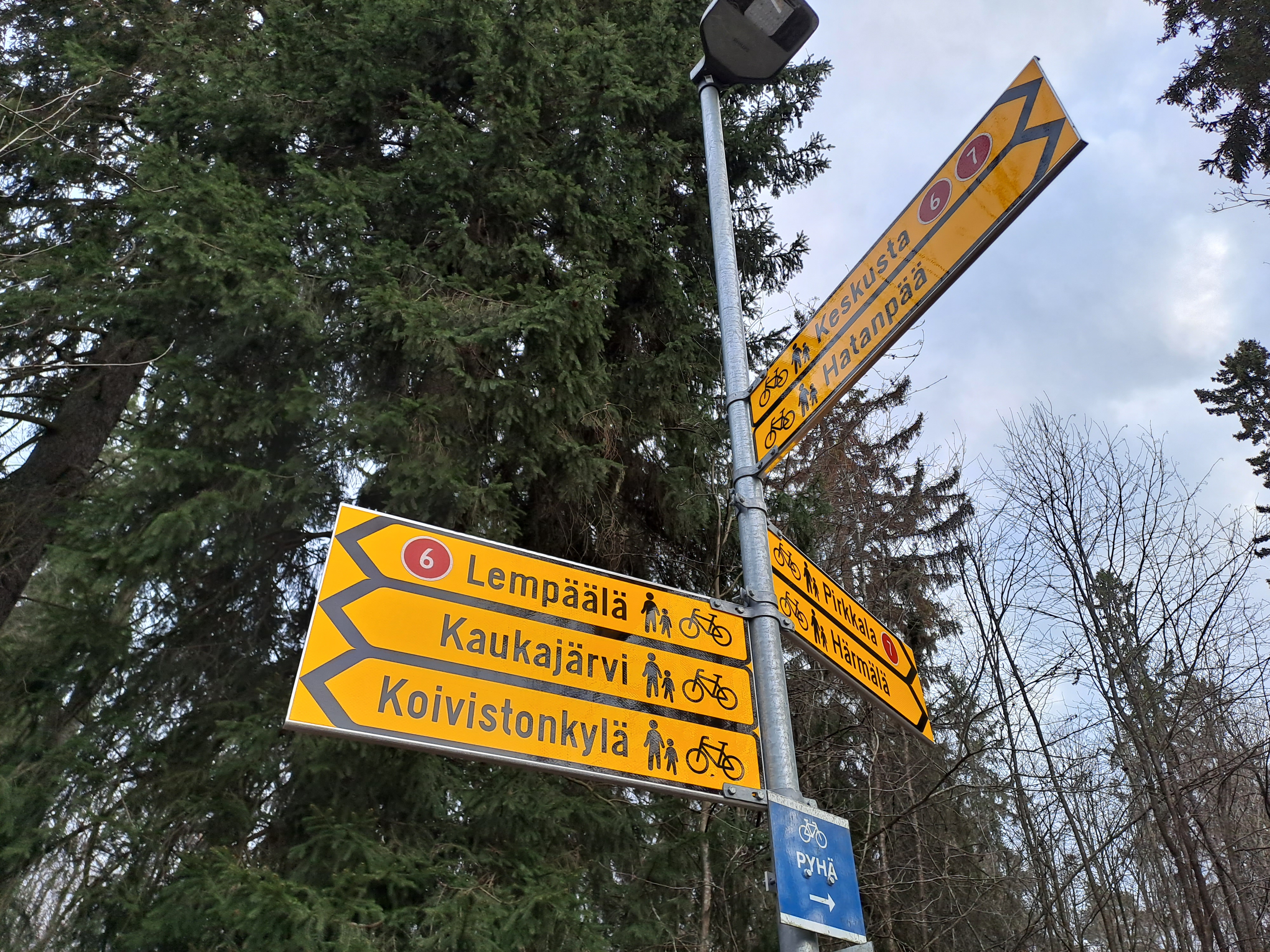 Those cycling in the direction of Lempäälä are directed from Vihilahti along Haapakuja to Sarankulmankatu. Towards Pirkkala, the route continues through the park area in Rantaperkiö and Härmälä along the shoreline until the junction of Leirintäkatu and Nuolialantie.