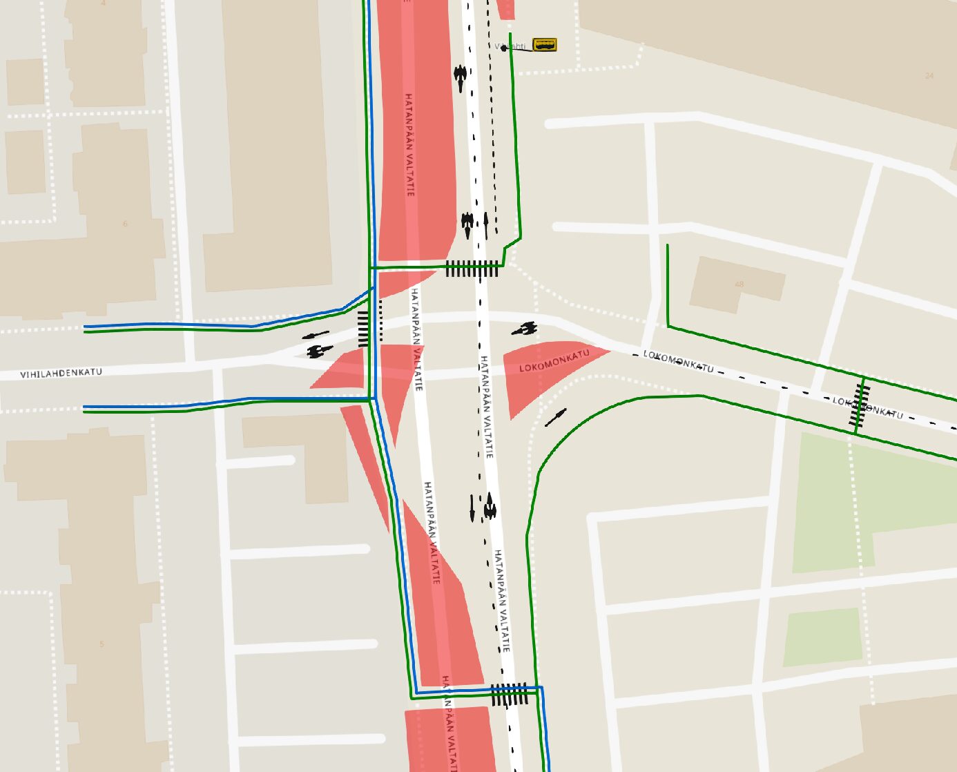 Hatanpään valtatien ja Lokomonkadun eteläisen risteyksen alueella tehdään vesihuollon liitostöitä, joiden vuoksi risteysalueen liikennejärjestelyihin tehdään väliaikaisesti pieniä muutoksia tiistaina 22.7.